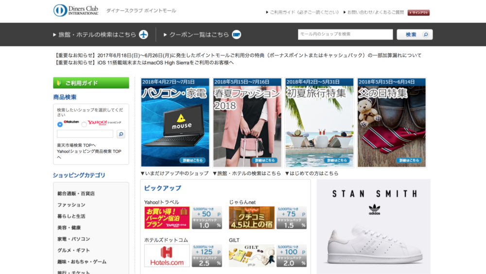 ダイナースクラブ ポイントーモールというものがあり、加盟店の利用でポイントアップを受けることができます。