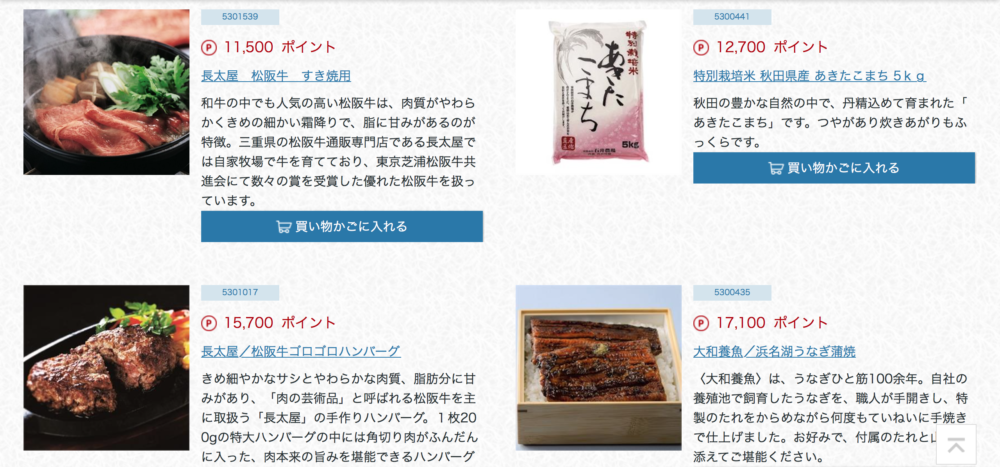交換できる商品は、お肉、魚介製品、お米などの食品から家電まで様々なものが揃っています。